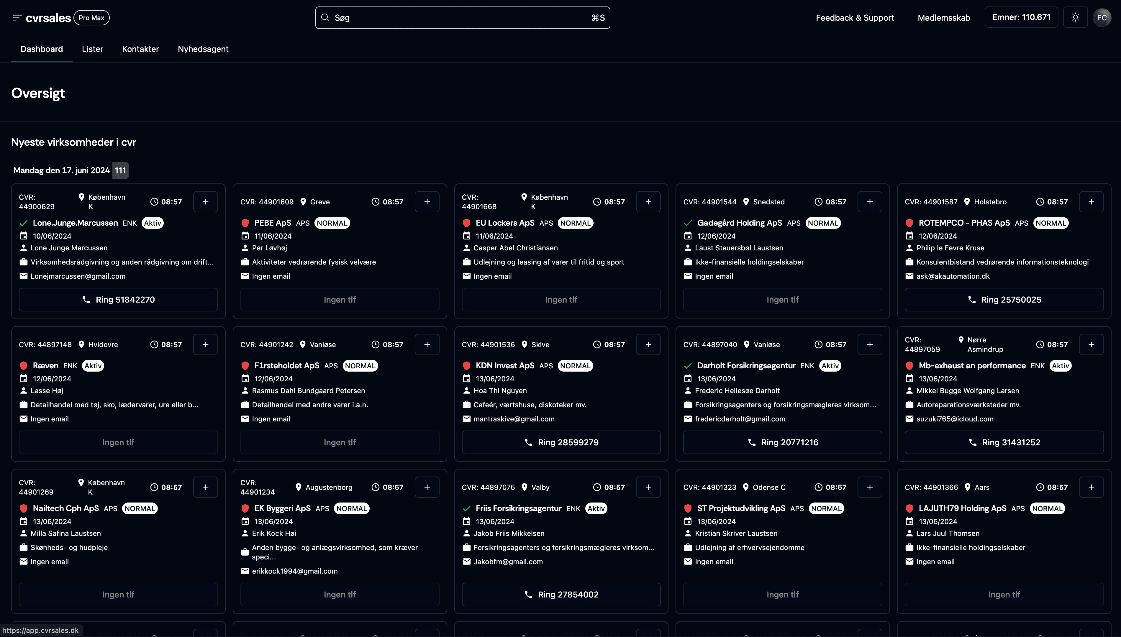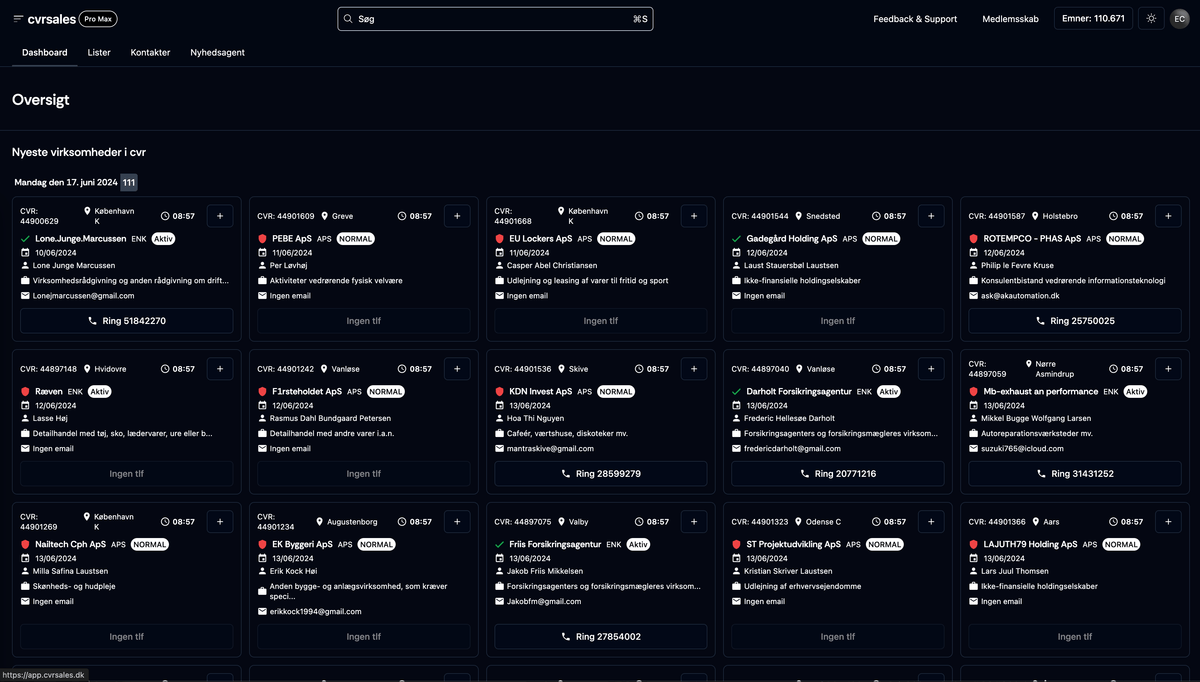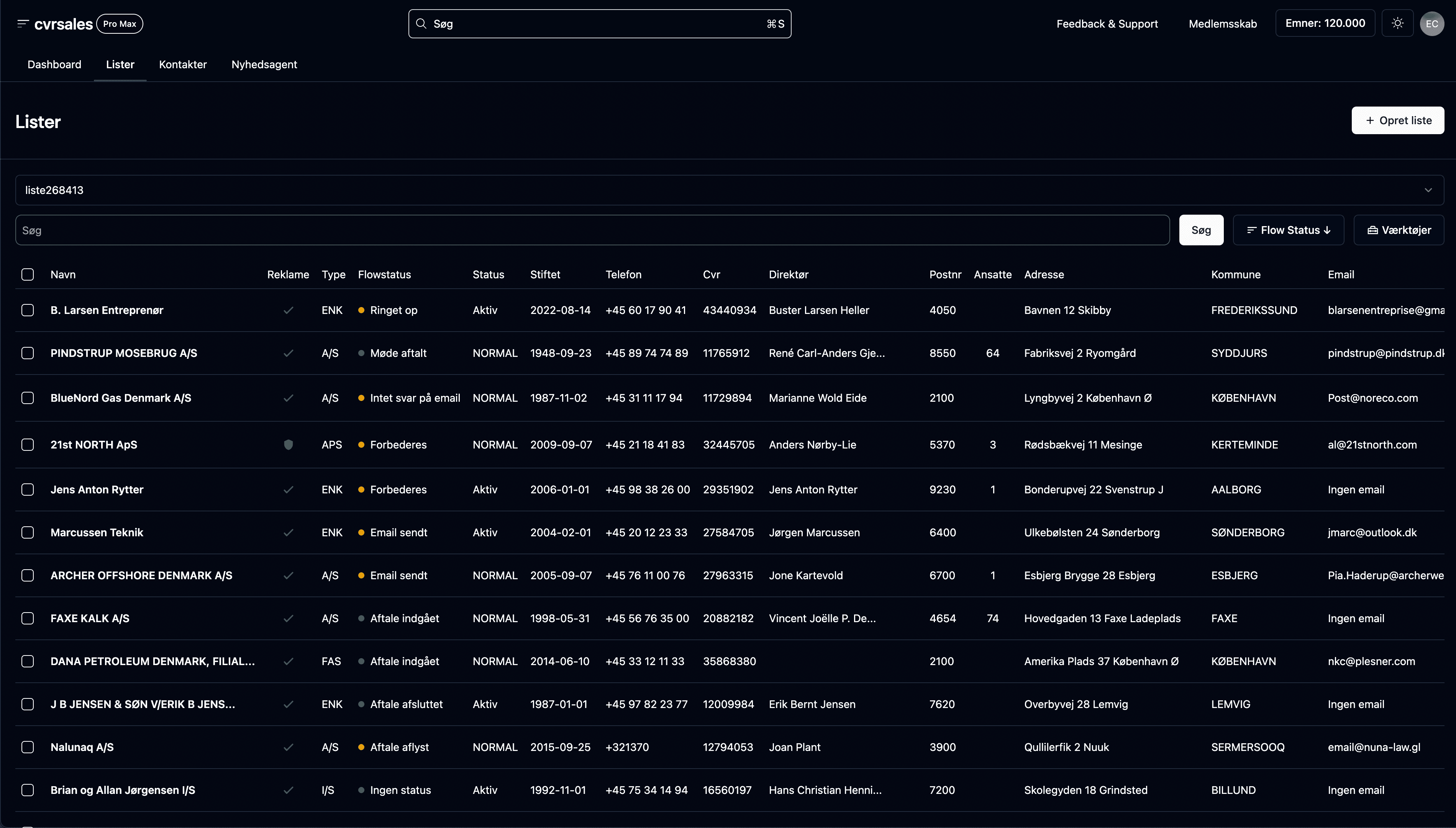 Vi har data på alle aktive danske virksomheder. Der tilføjes 30 - 100 nye virksomheder hver dag.